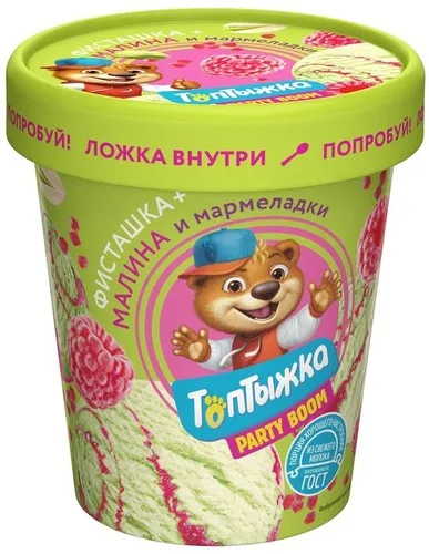 Мороженое пломбир Топтыжка Фисташка Малина-Мармелад 12% бум/ст 270*8 Милком